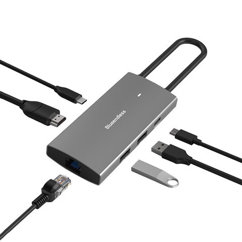 9 ב 1 usb c סוג c hub sd/tf כרטיס קורא רכזת 4k 30hz hdtv המפעל הסיטונאי רב תפקודי USB-C pd dock עם ethernet grey