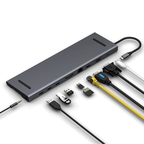 10 ב 1 סוג יציאה רב סוג c usb hub סוג c מתאם 3.0 USB 4k hdtv vga וידאו אודיו ממיר pd תחנת טעינה